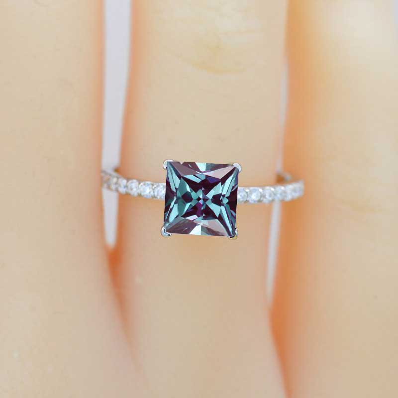 2 Carat Princess Cut Alexandrite Engagement Ring - Giliarto