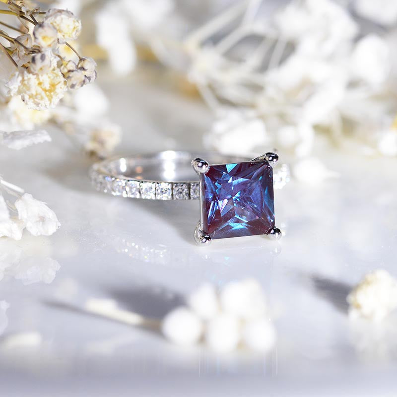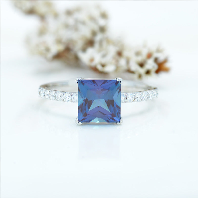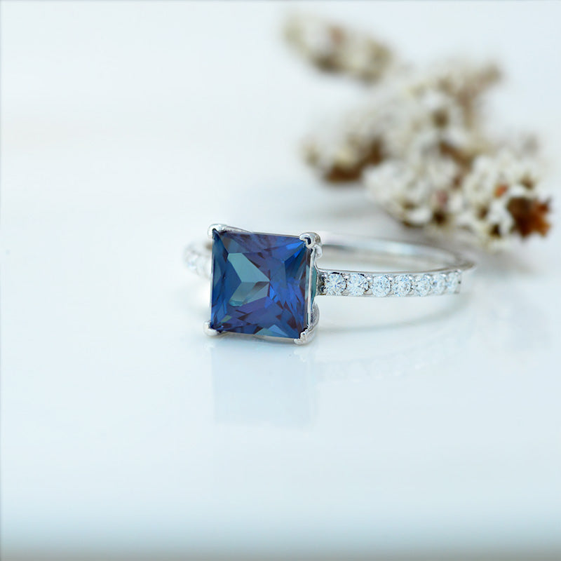 2 Carat Princess Cut Alexandrite Giliarto Engagement Ring