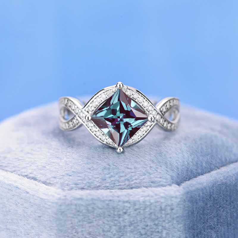 2 Carat Princess Cut Alexandrite Stone 14K White Gold Ring - Giliarto