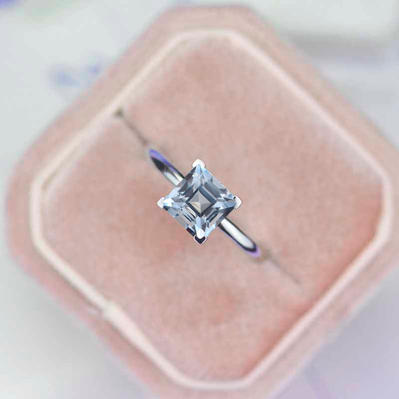 2 Carat Princess Cut Genuine Natural Aquamarine White Gold Giliarto En