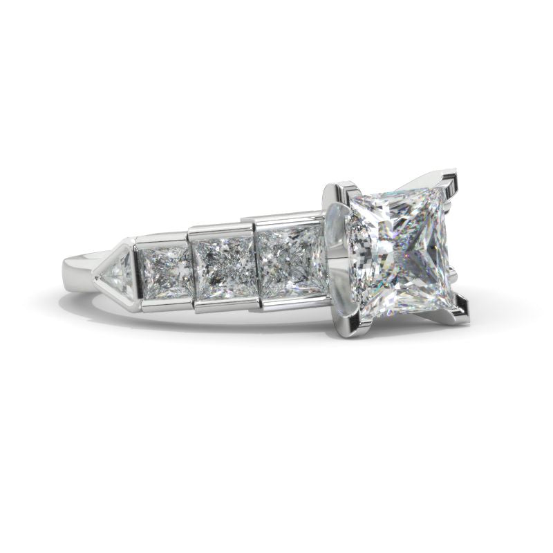 Approximately 2.0+ Carat LAB-Grown Diamond Center Stone ( Princess Cut 7x7mm, D-Colorless VVS1-Clarity, Ex-Cut, Ex-Polish, VG-Symmetry) and 14 Accent Stones (1.5 CTW D-Colorless VVS1 clarity) with 14K White Gold.