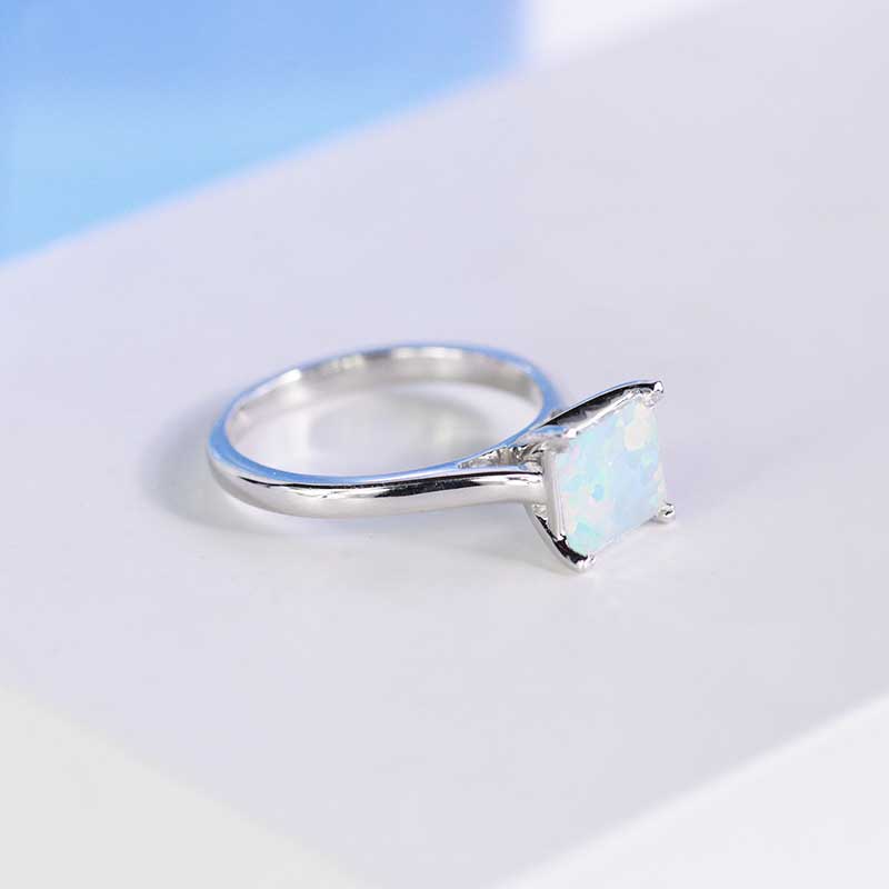 2 Carat Princess Cut White Opal White Gold Giliarto Engagement Ring