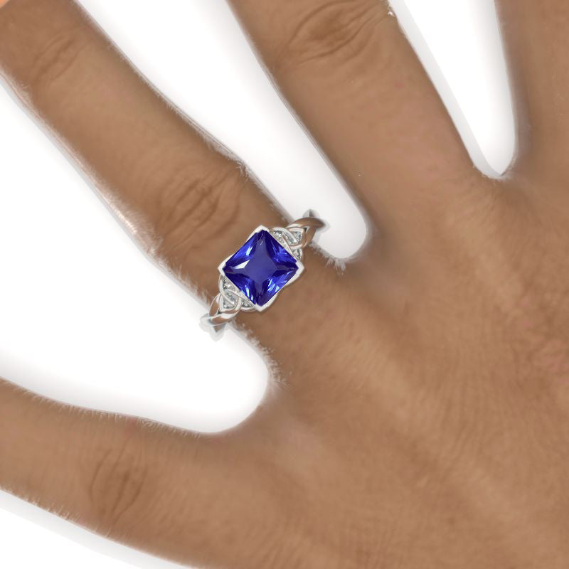 2 Carat Princess Natural Genuine Tanzanite Celtic Engagement Ring 14K - Giliarto