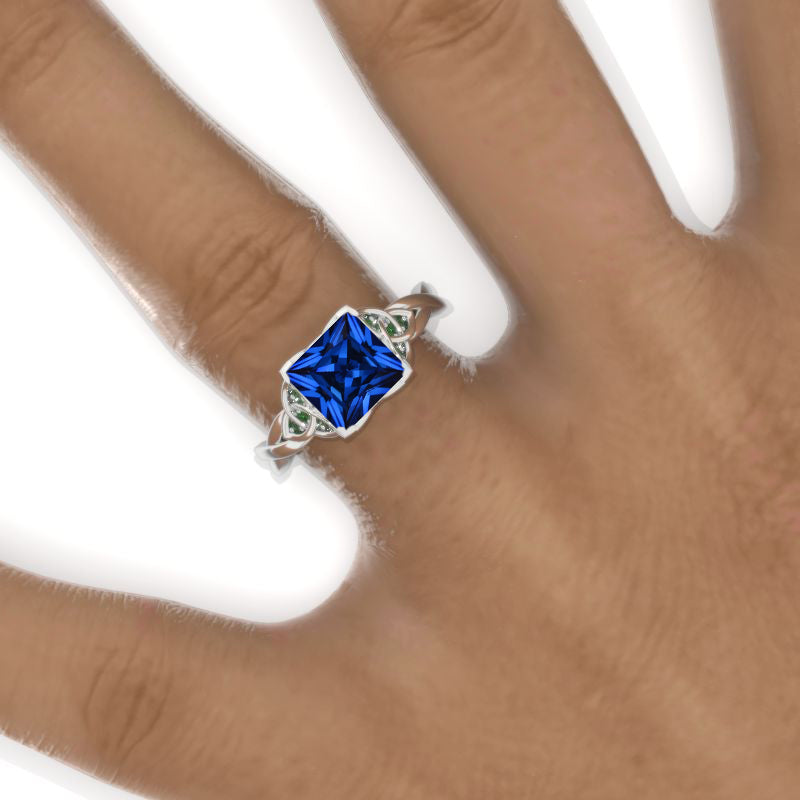 2 Carat Princess Royal Blue Sapphire Celtic Engagement Ring 14K White Gold Ring