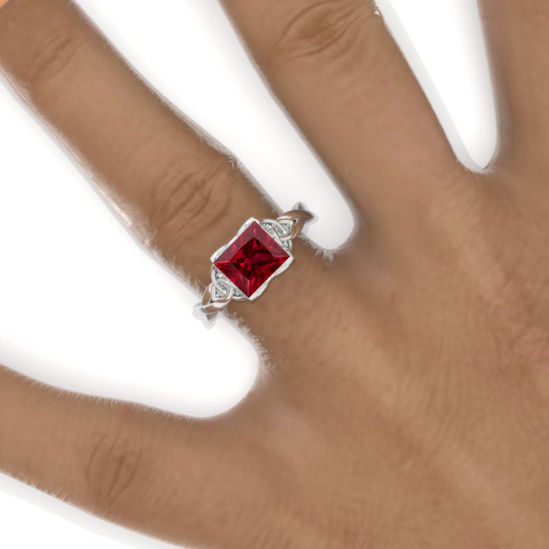 2 Carat Princess Ruby Celtic Engagement Ring 14K White Gold Ring - Giliarto