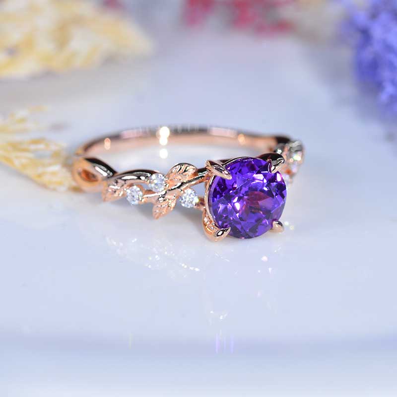 2 Carat Purple Sapphire Floral Rose Gold Engagement Ring - Giliarto