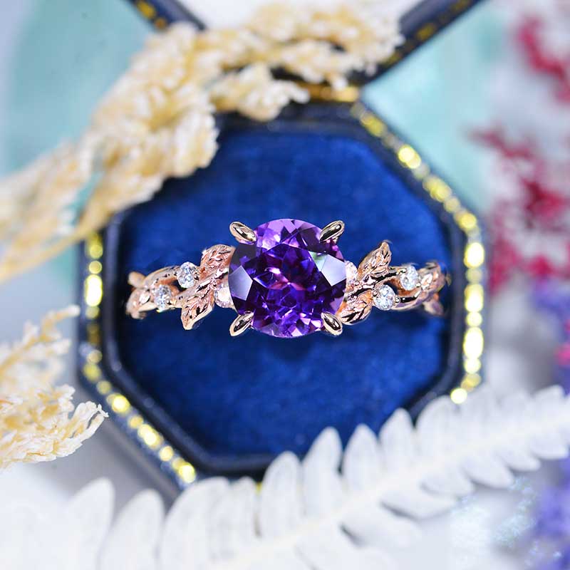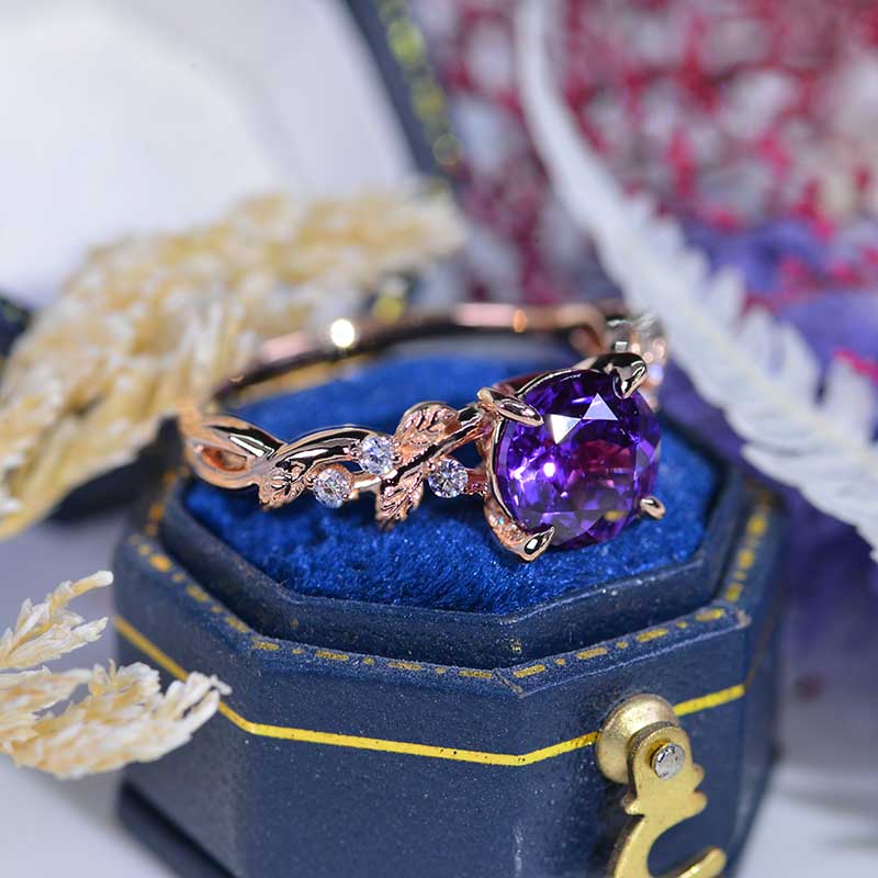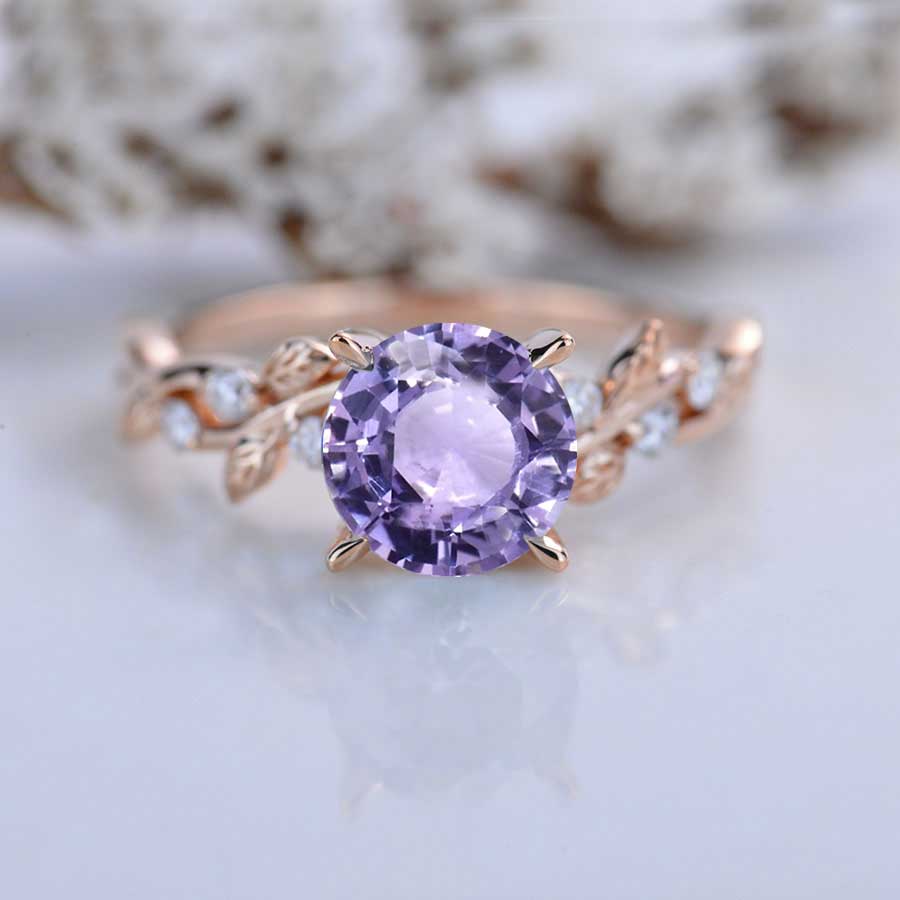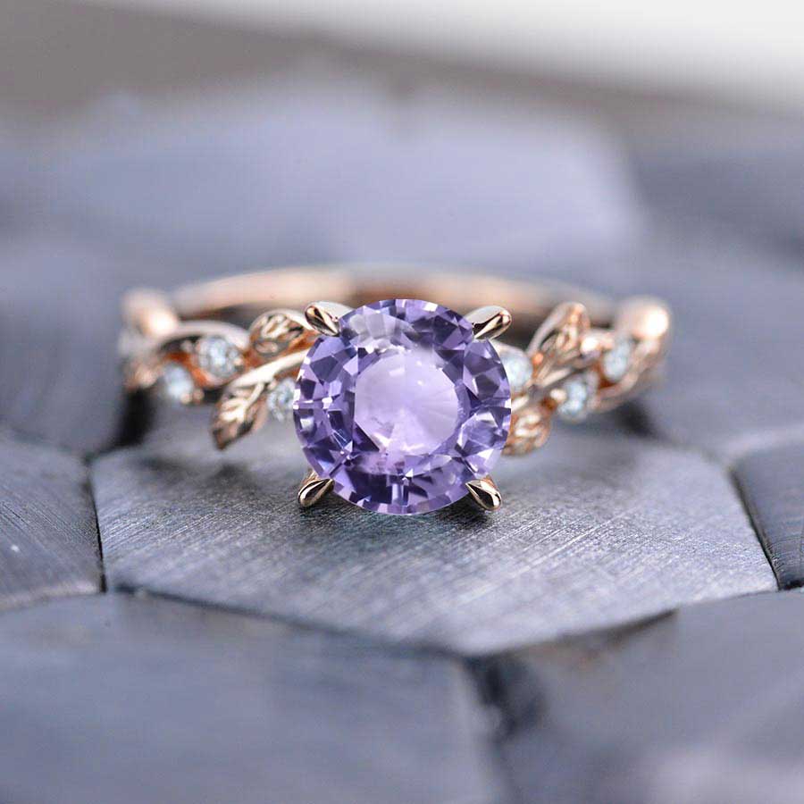 2 Carat Purple Sapphire Floral Rose Gold Engagement Ring