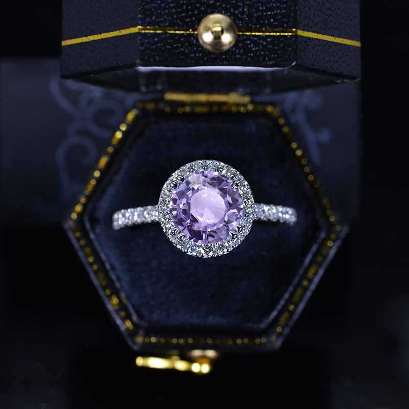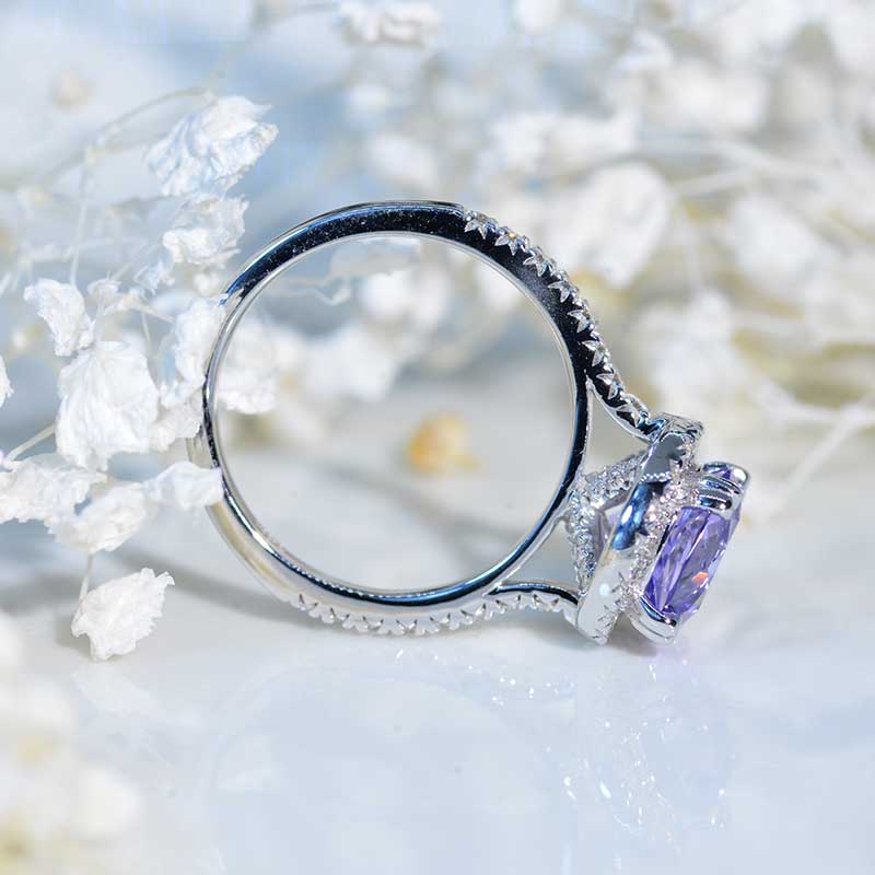2 Carat Purple Sapphire Halo Gold Engagement Promissory Ring Model 837 - Giliarto