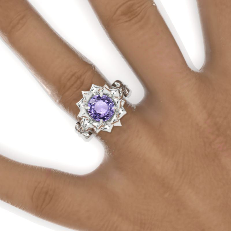 2 Carat Purple Sapphire Twig Floral White Gold Engagement Ring - Giliarto