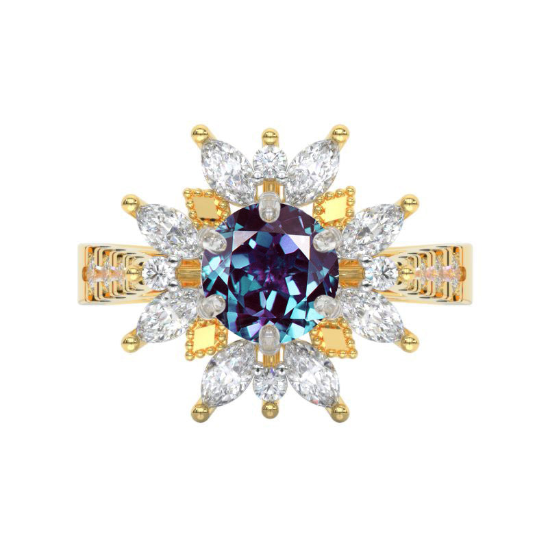 2 Carat Round Alexandrite Snowflake Floral Halo Engagement Ring - Giliarto