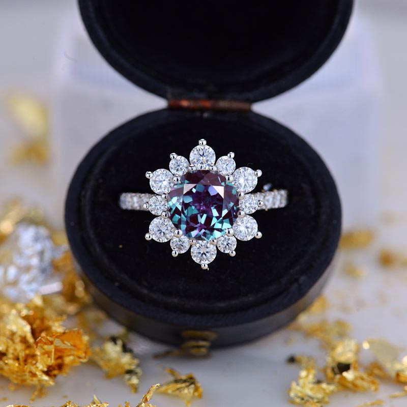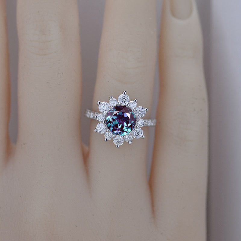 2 Carat Round Alexandrite Snowflake Halo Engagement Ring. Victorian 14 - Giliarto