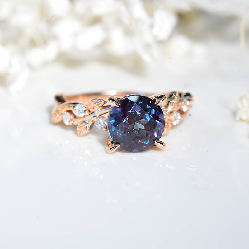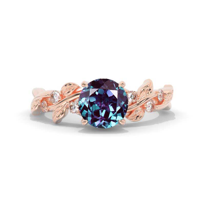 2 Carat Round Brilliant Cut Alexandrite Floral Rose Gold Engagement Ri - Giliarto