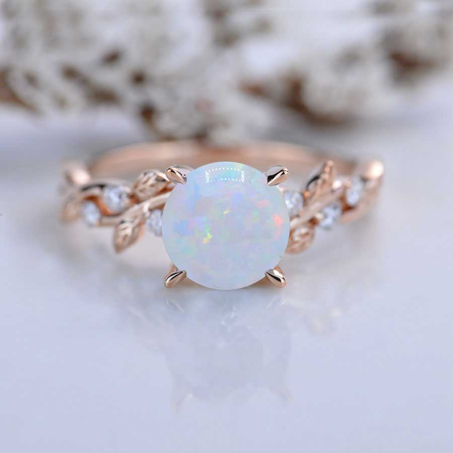 2 Carat Round Brilliant Cut Genuine White Opal Floral Rose Gold Engagement Ring