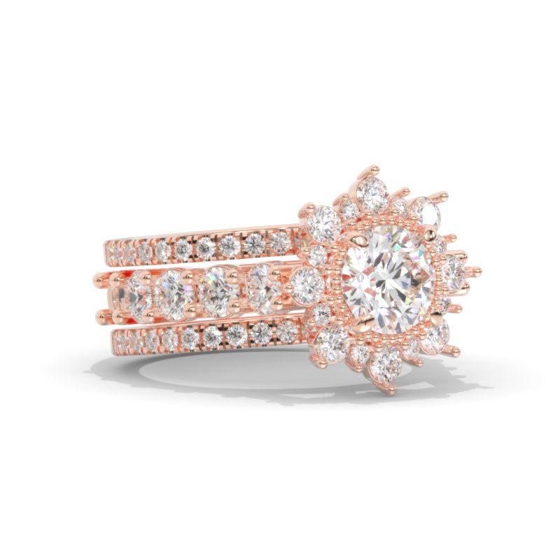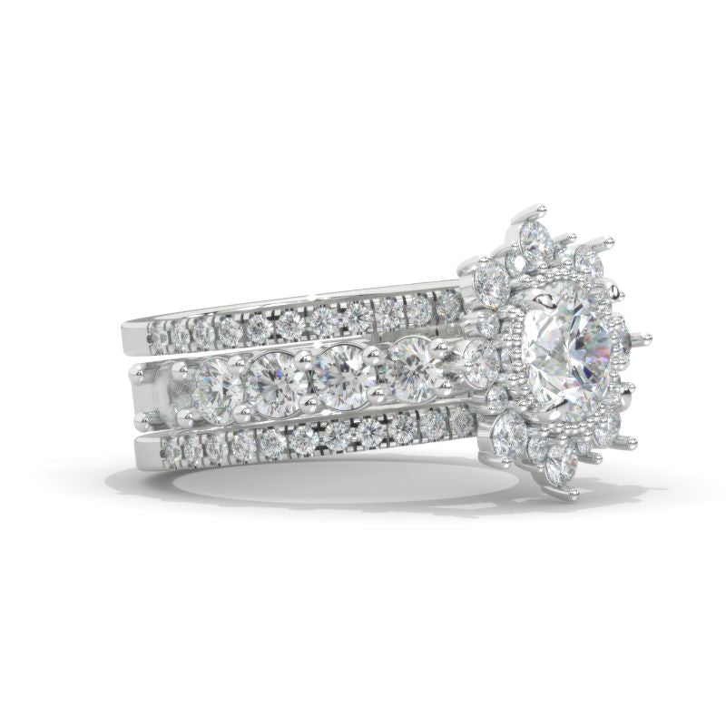 Engagement Ring:Approximately 2+ Carat LAB-Grown Diamond Round 8mm D-Colorless VVS1-Clarity, VG-Cut, Ex-Polish, VG-Symmetry Center Stone with 38 Colorless 0.5 CTW LAB-Grown Diamond