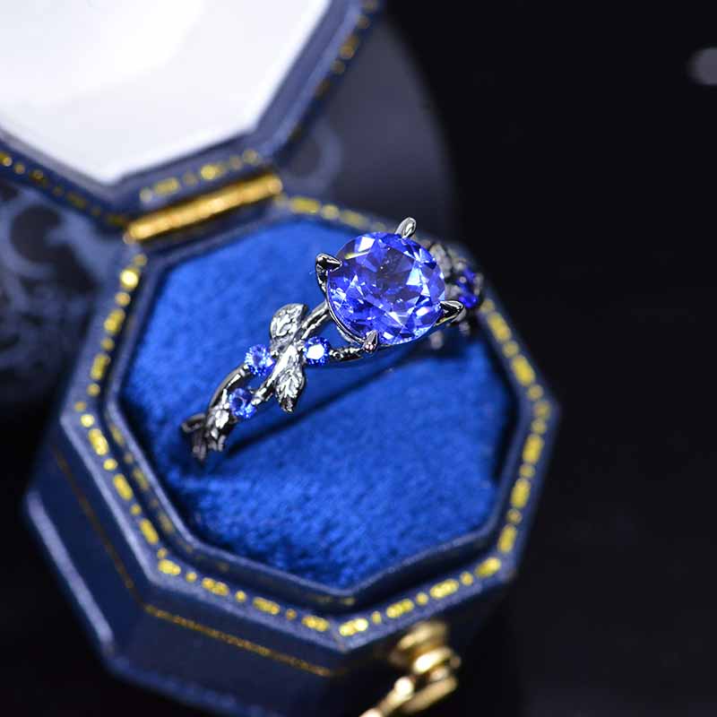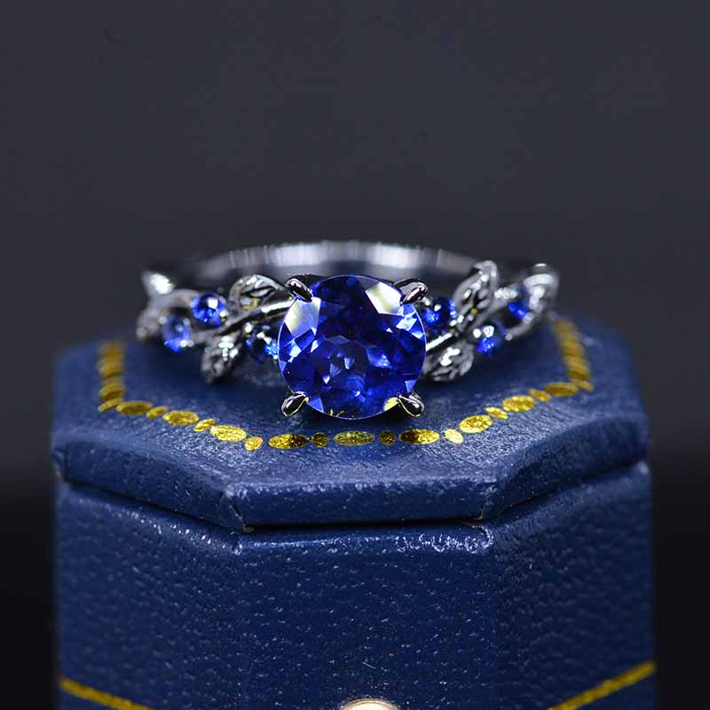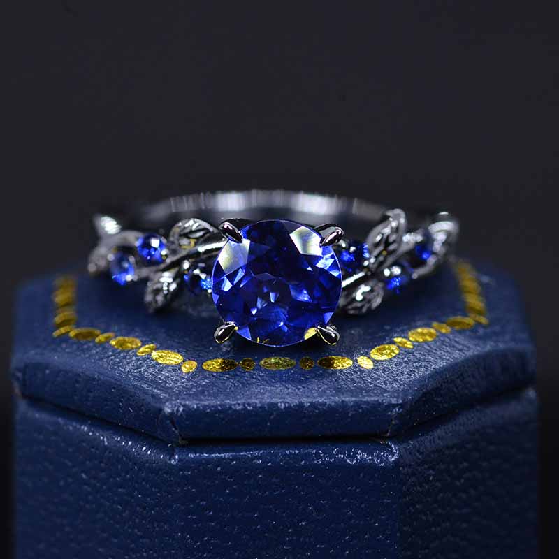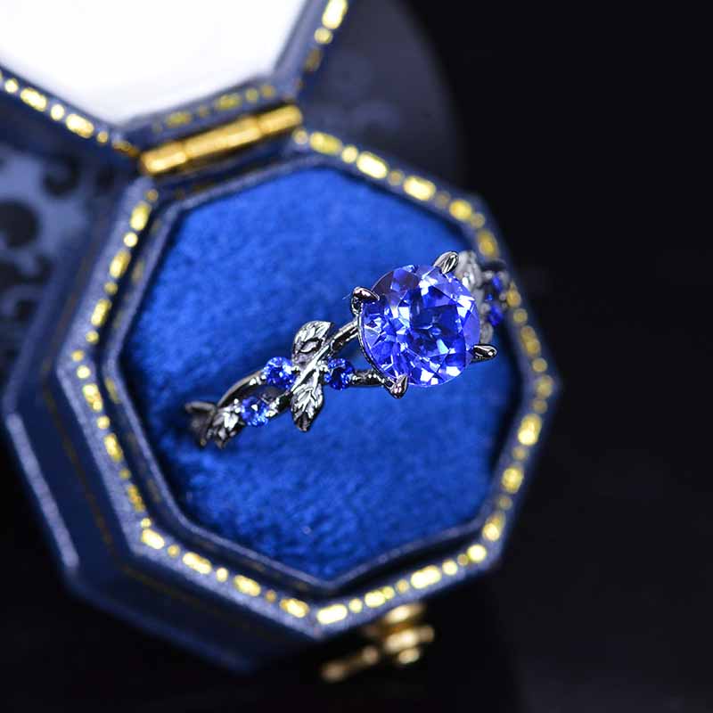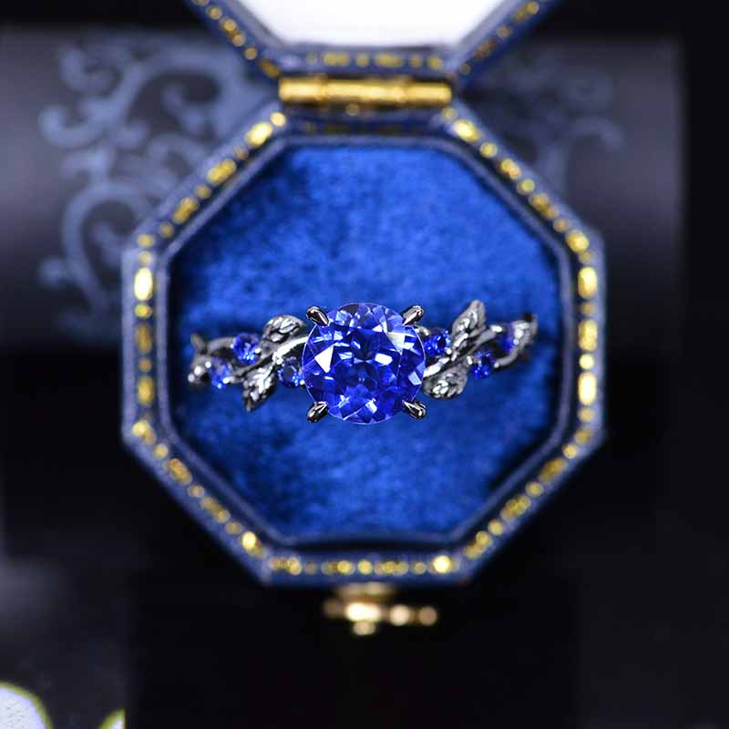 2 Carat Round Brilliant Cut Sapphire Floral Black Gold Engagement Ring - Giliarto
