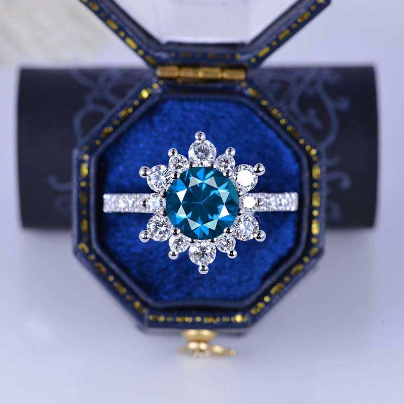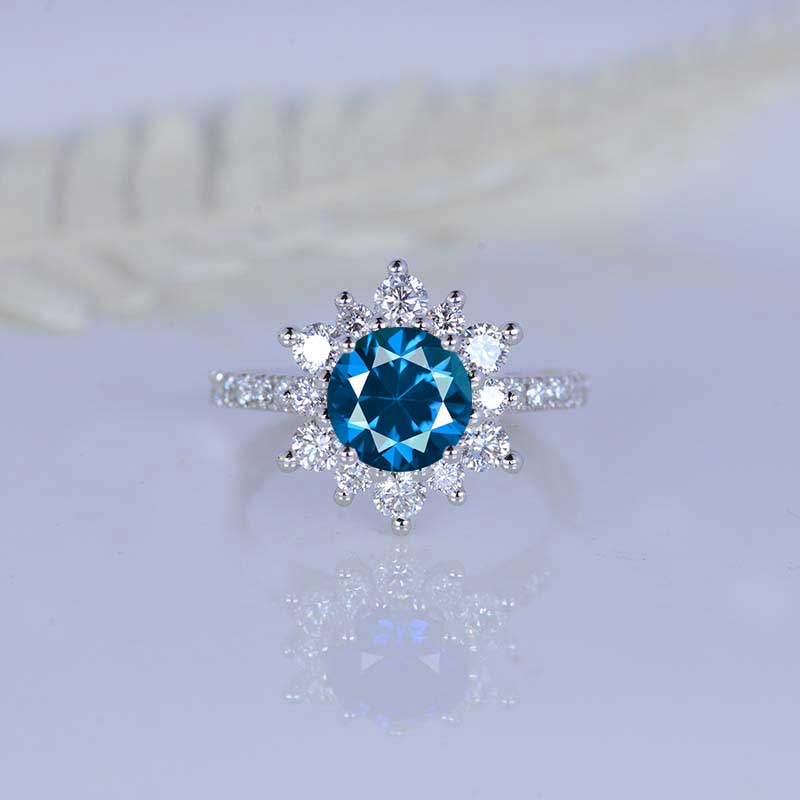 2 Carat Round Cornflower Sapphire Snowflake Halo Engagement Ring. Vict - Giliarto