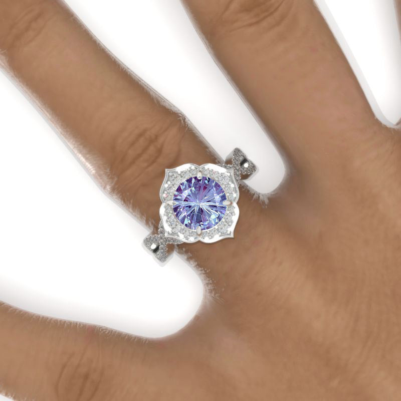 2 Carat Round Fireworks Cut Alexandrite Floral Halo Twisted Shank Enga - Giliarto