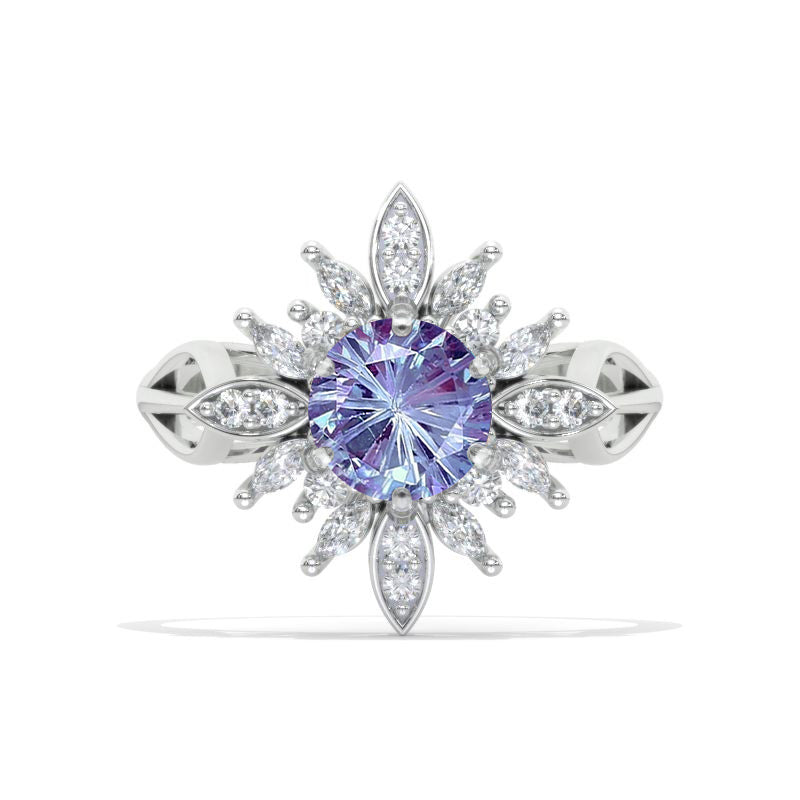 2 Carat Round Fireworks Cut Alexandrite Halo Engagement Ring - Giliarto