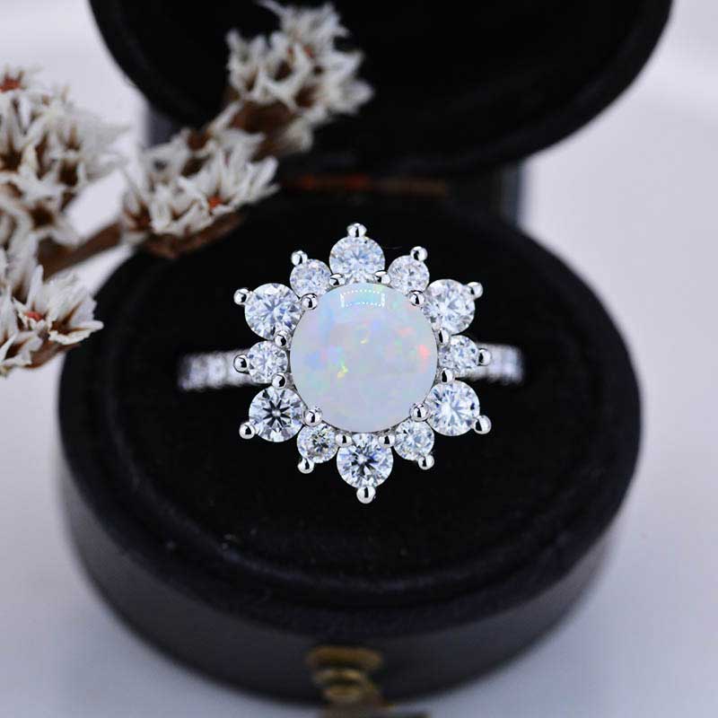 2 Carat Round Genuine White Opal Snowflake Halo Engagement Ring. Victo - Giliarto
