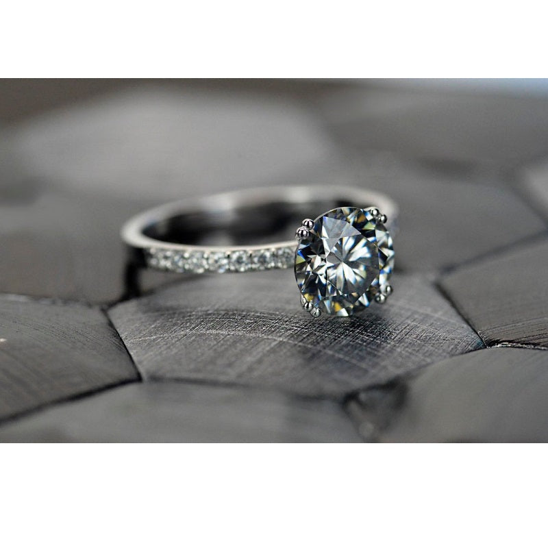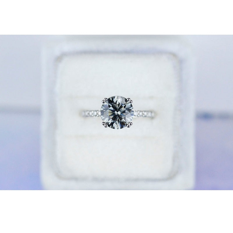 2 Carat Round Gray Grey Moissanite Accents Stone 14K White Gold Ring f - Giliarto