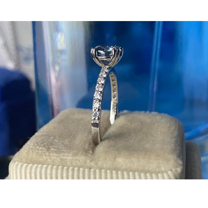 2 Carat Round Gray Grey Moissanite Accents Stone 14K White Gold Ring finger size 7 ready to ship