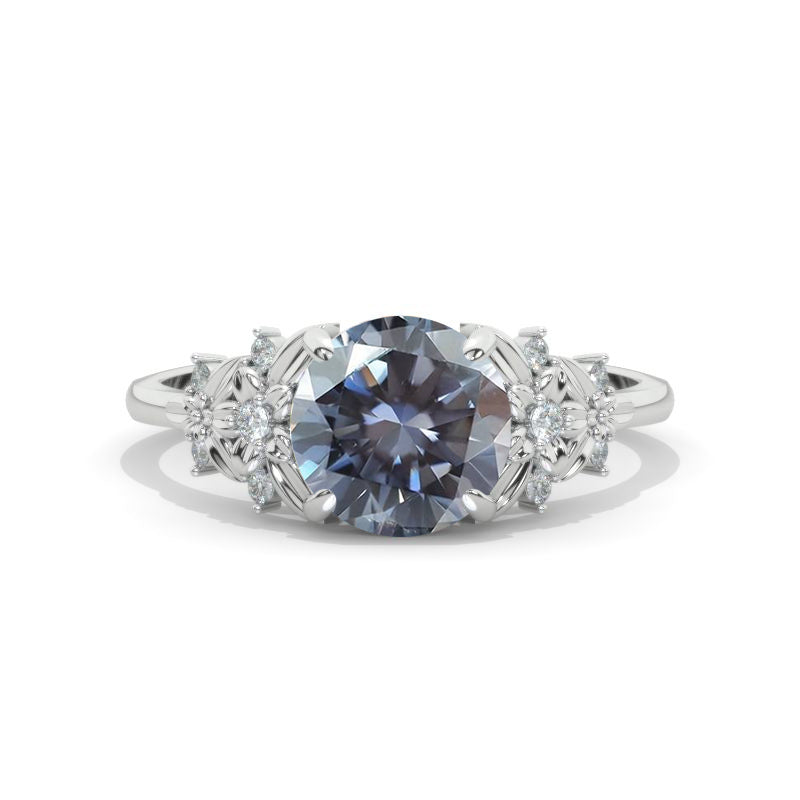 The default design option features 8mm Brilliant Cut Gray Moissanite Center and Accent Stones, D-Colorless, VVS1-Clarity, VG-Cut, Ex-Polish, VG-Symmetry