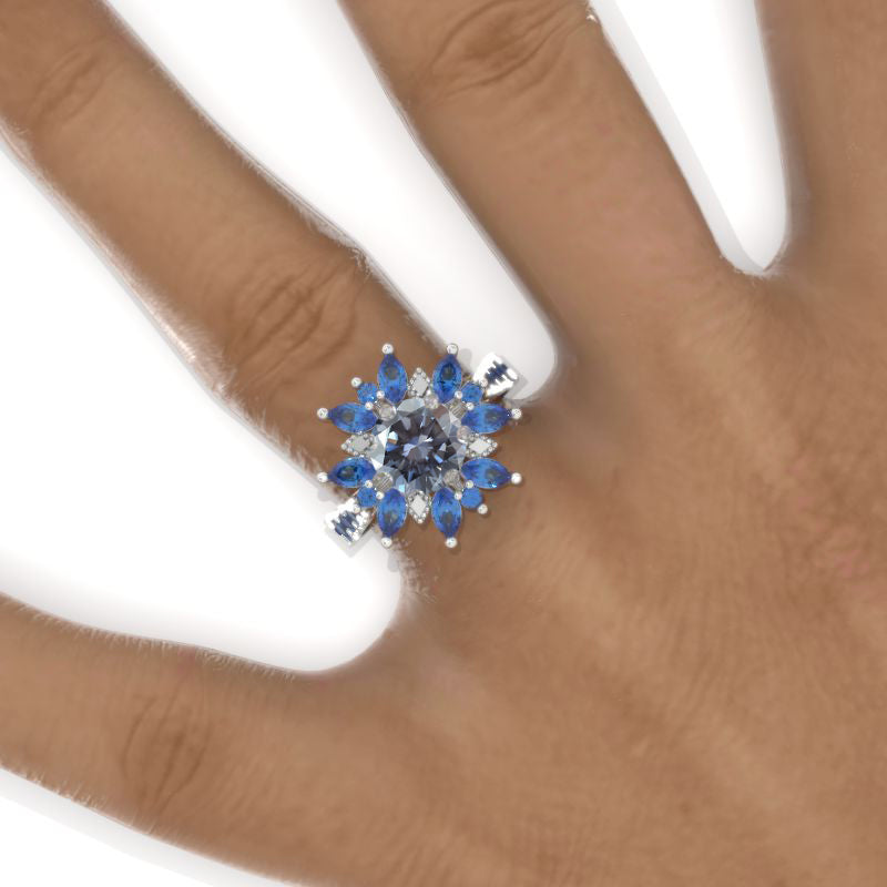 Ex-Polish, VG-Symmetry Center Stone with Sapphire 0.9 CTWÂ