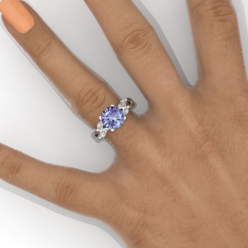 The default design option features 8mm Fireworks Cut Ethically LAB-Grown Alexandrite Center Stone VG-Cut, Ex-Polish, VG-Symmetry