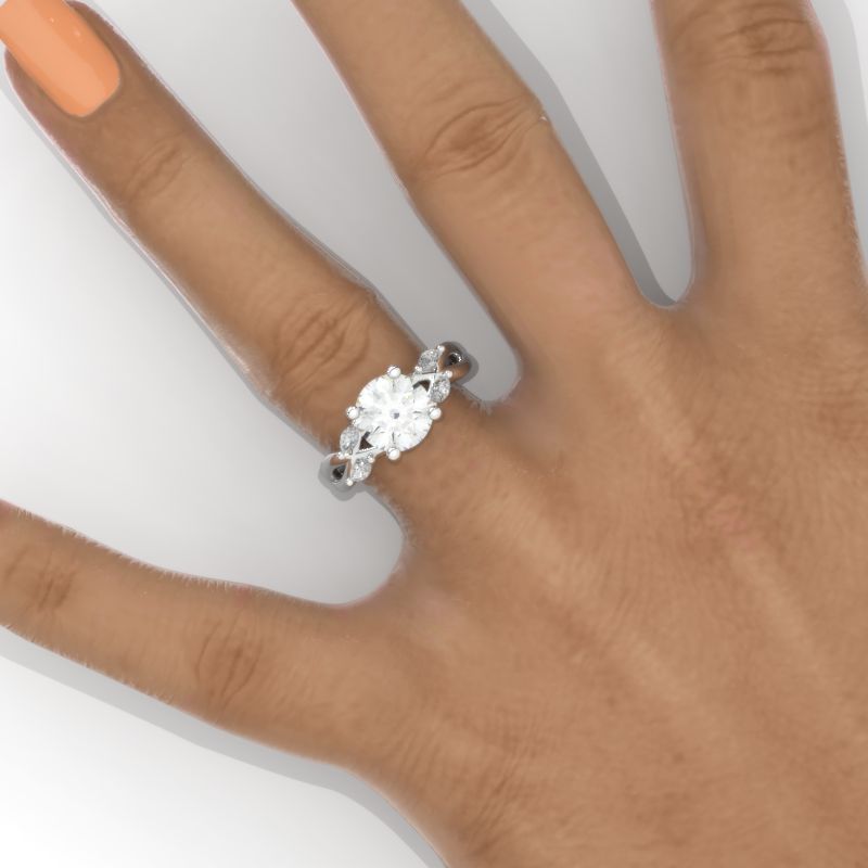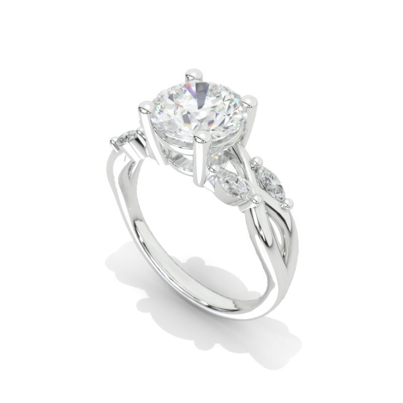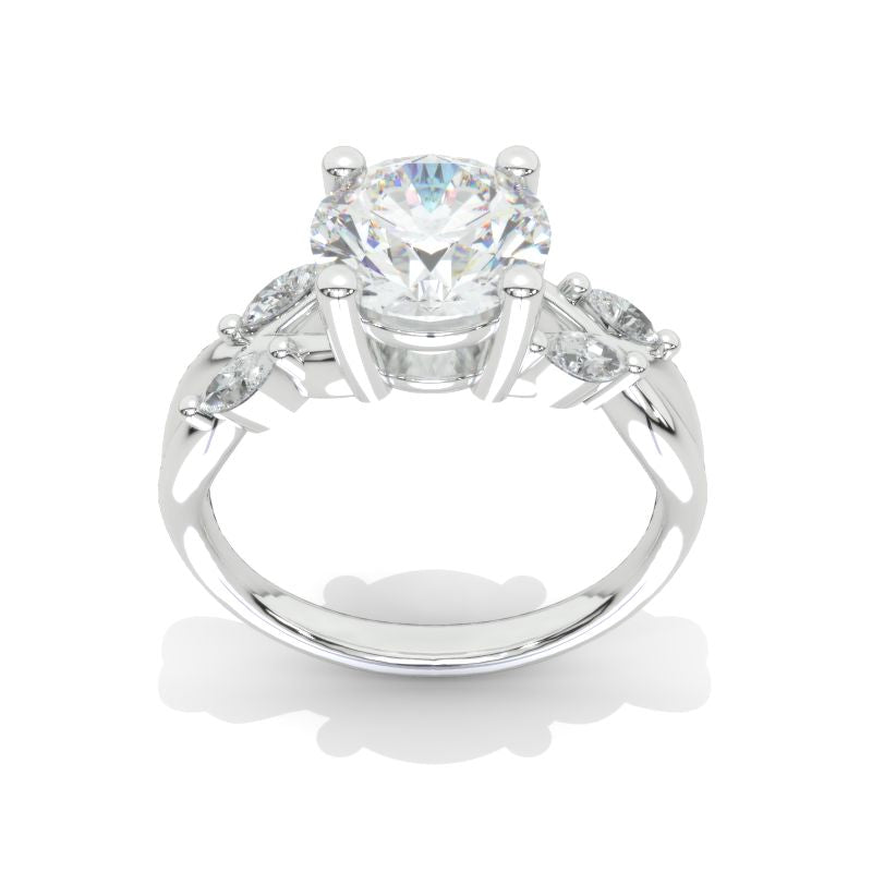 The default design option features 8mm Ā LAB-Grown DiamondĀ Center StoneĀ D-Colorless, VVS1-Clarity, VG-Cut, Ex-Polish, VG-Symmetry, Set with Colorless LAB-Grown Diamond Accent stonesĀ in 14KĀ White Gold Engagement Ring.Ā