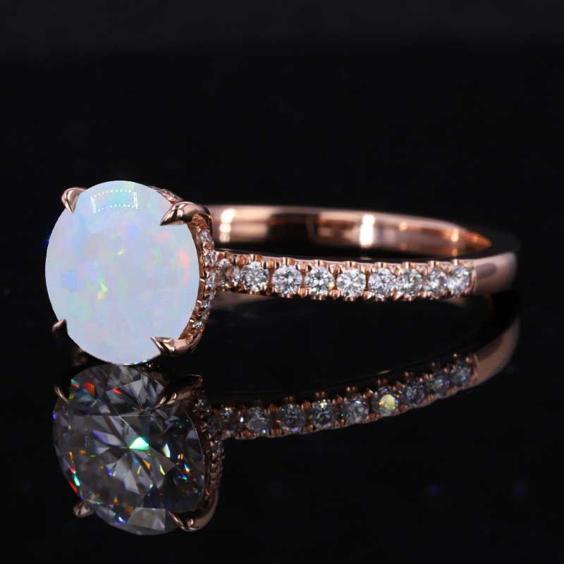 2 Carat Round Hidden Halo Genuine White Opal Rose Gold Engagement Ring - Giliarto