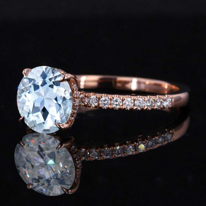 2 Carat Round Hidden Halo Giliarto Genuine Natural Aquamarine Rose Gold Engagement Ring
