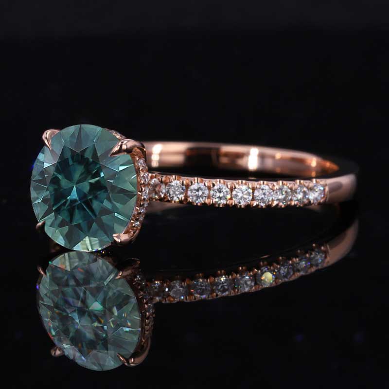 2 Carat Round Hidden Halo Teal Sapphire Rose Gold Engagement Ring