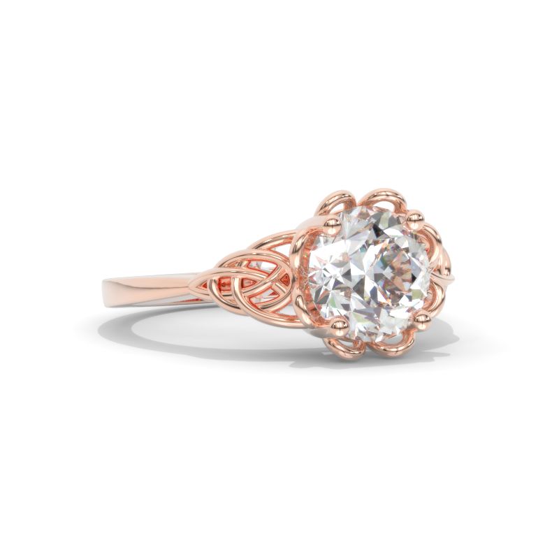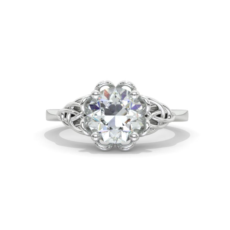 2 Carat Round LAB-Grown Diamond Celtic Floral Engagement Ring 14K White Gold Ring Model 1051-8