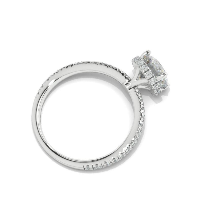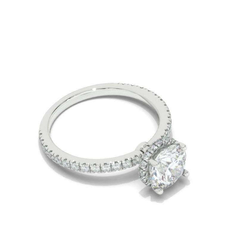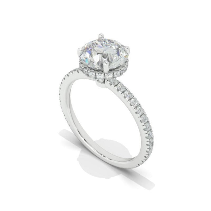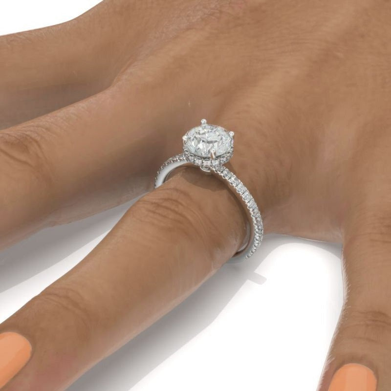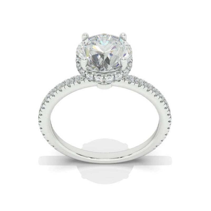 The default design option features Approximately 2.0 carat+ round LAB-Grown Diamond Stone, D-Colorless, VVS1-Clarity, VG-Cut, Ex-Polish, VG-Symmetry