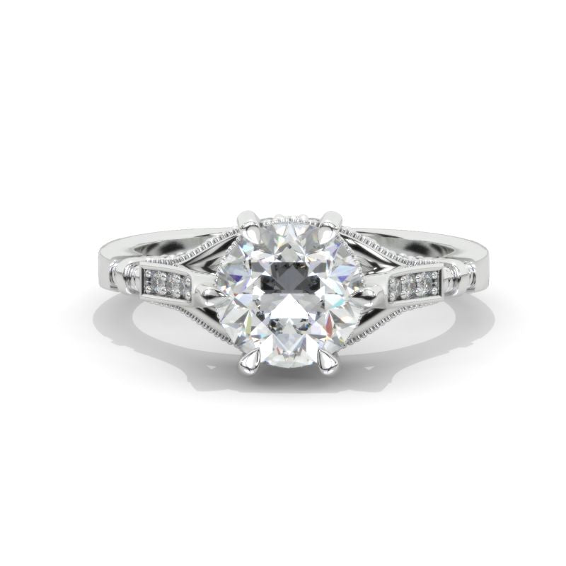 Approximately 2+ Carat LAB-Grown Diamond Round 8mm D-Colorless, VVS1-Clarity, VG-Cut, Ex-Polish, VG-Symmetry Center Stone with D-Colorless 0.5CTW LAB-Grown Diamond (D-Colorless, VVS1clarity) Accent Stones 14K White Gold Ring.