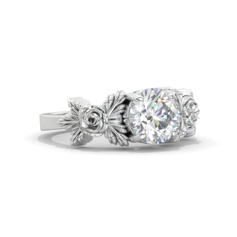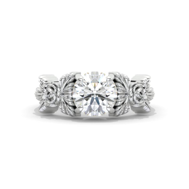 Engagement : Approximately 2+Carat LAB-Grown DiamondRound8mm D-Colorless, VVS1-Clarity, VG-Cut, Ex-Polish, VG-Symmetry Center Stone Set with D-Colorless LAB-Grown Diamond Accent Stonesin 14K White Gold Ring.