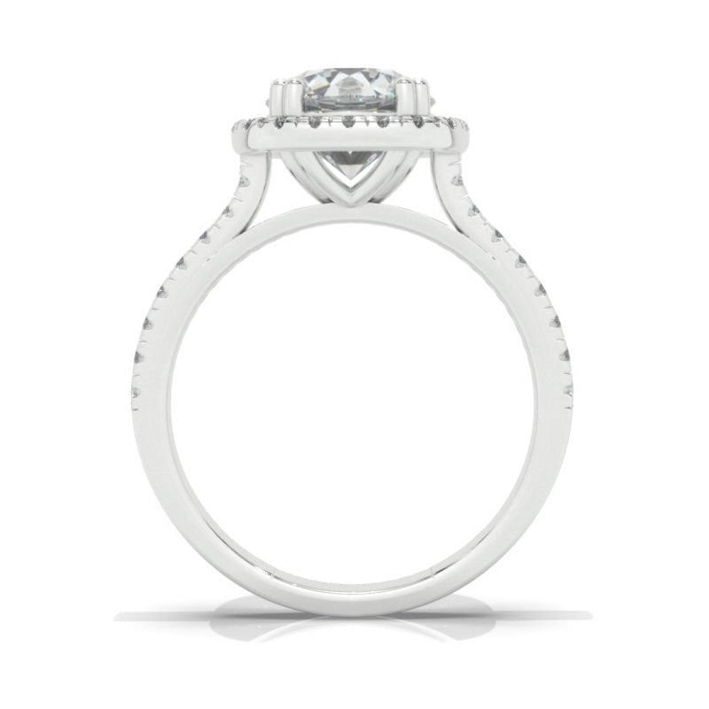 2 Carat Round Moissanite Halo Engagement Ring. Victorian 14K White Gold Ring