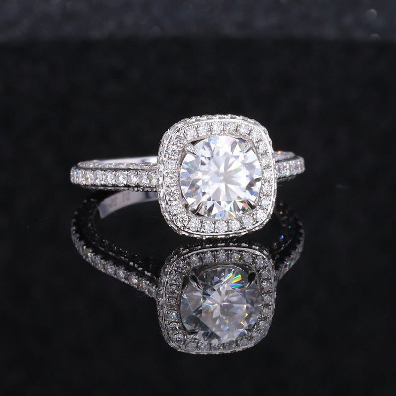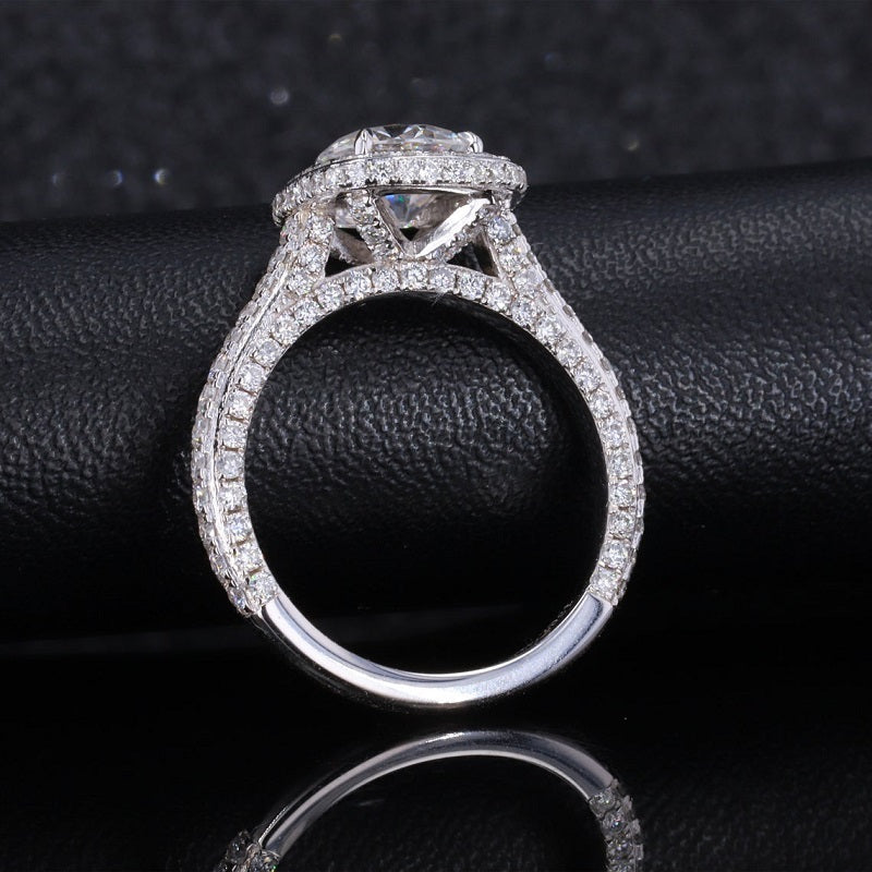2 Carat Round Moissanite Halo Engagement Ring, Four Prongs Moissanite - Giliarto