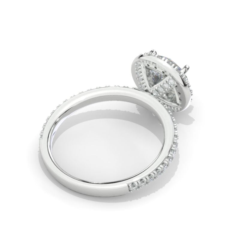 The default design option features 8mm Brilliant Cut Moissanite Center and Accent Stones, D-Colorless, VVS1-Clarity, VG-Cut, Ex-Polish, VG-Symmetry with 0.5 CTW Accents StonesÂ