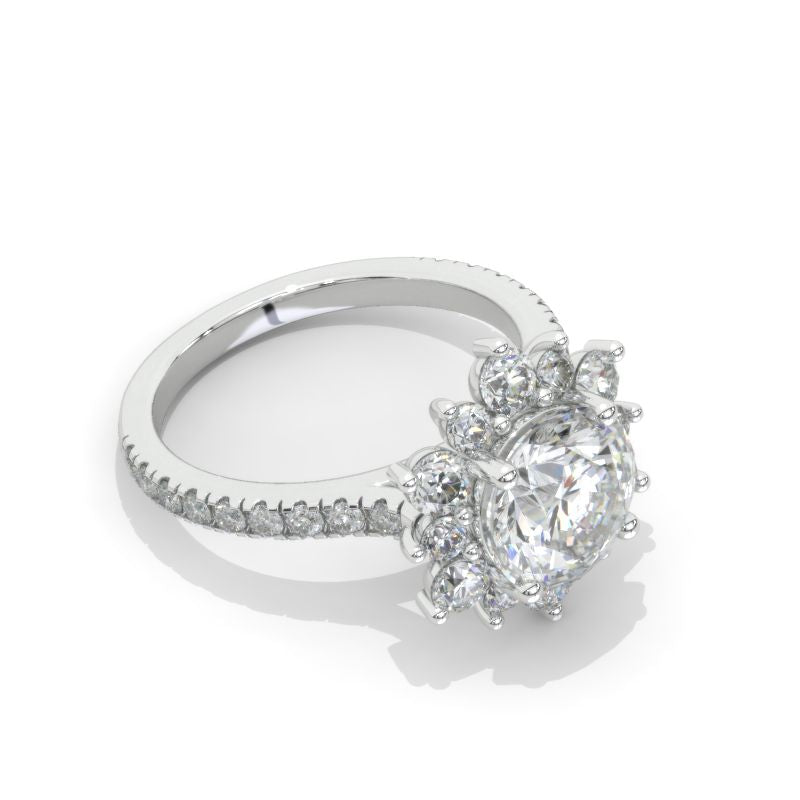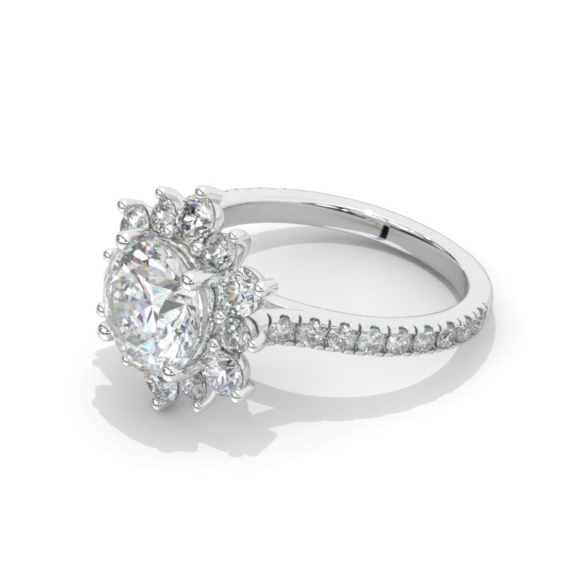 The default design option features 8mm Brilliant Cut Moissanite Stone, D-Colorless, VVS1-Clarity, VG-Cut, Ex-Polish, VG-Symmetry