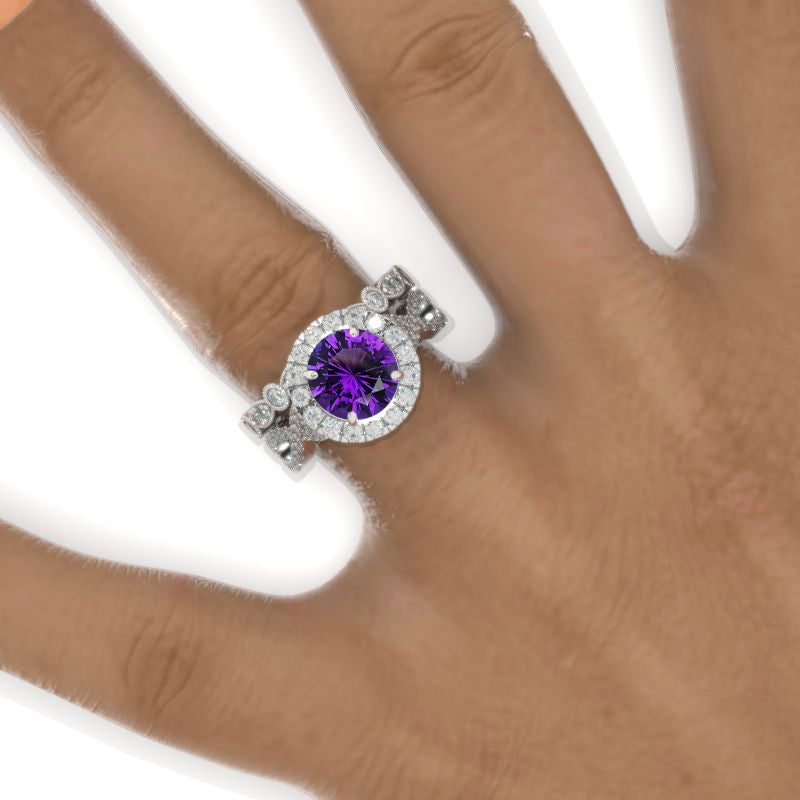 2 Carat Round Natural Amethyst Halo Twisted Shank Engagement Ring, Ete - Giliarto
