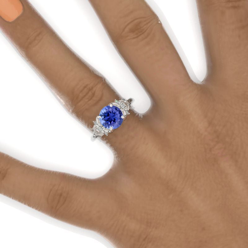 2 Carat Round Natural Genuine Tanzanite Floral Engagement Ring. Victor - Giliarto