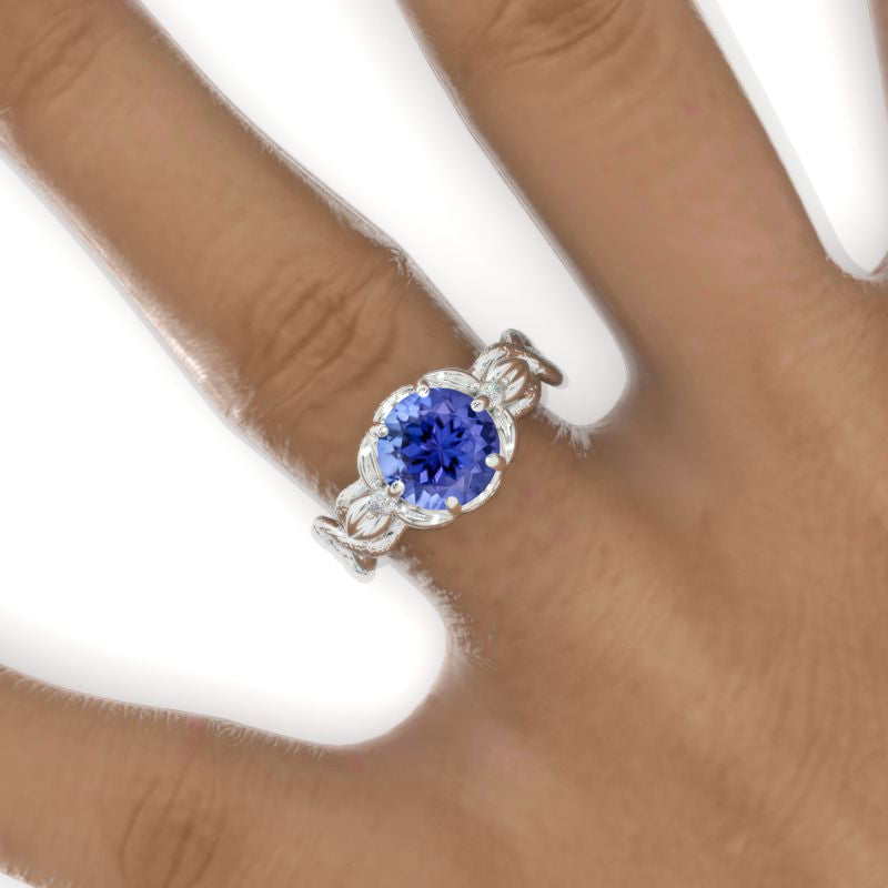2 Carat Round Natural Genuine Tanzanite Floral Twig Shank Engagement R - Giliarto