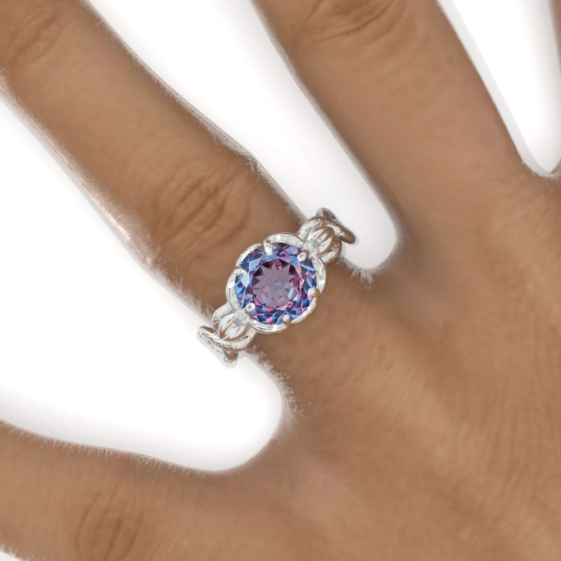 2 Carat Round Portuguese Cut Alexandrite Floral Twig Shank Engagement - Giliarto
