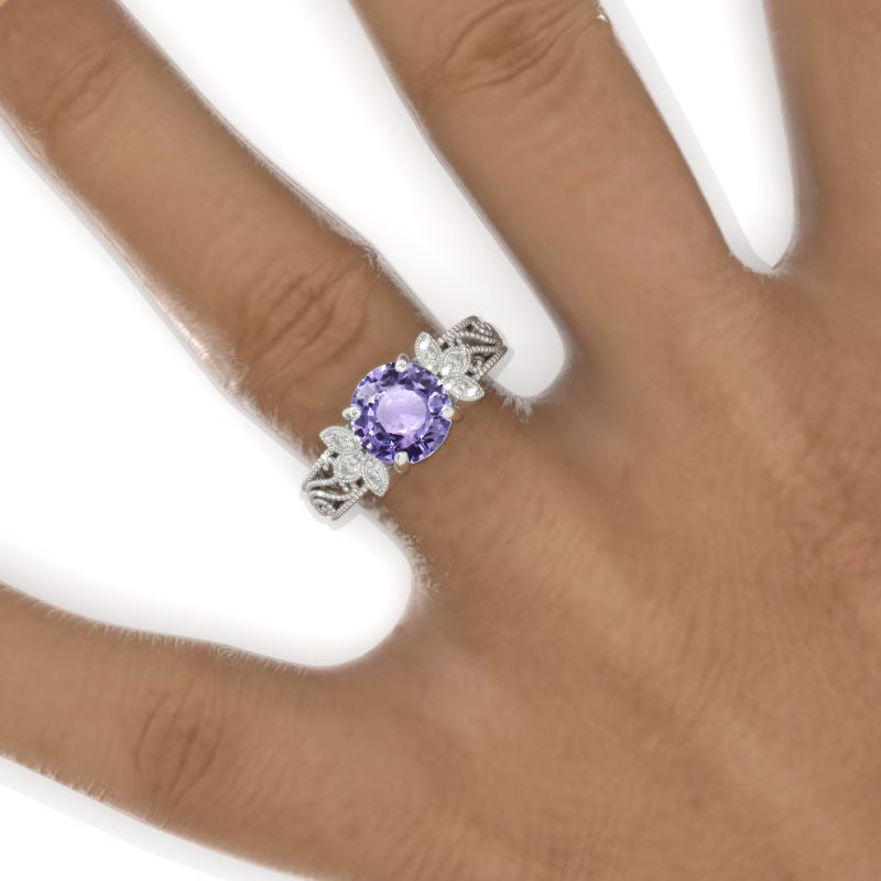 2 Carat Round Purple Sapphire Floral Lace Shank Engagement Ring