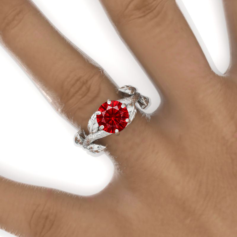 2 Carat Round Ruby Floral Twig Shank Engagement Ring - Giliarto