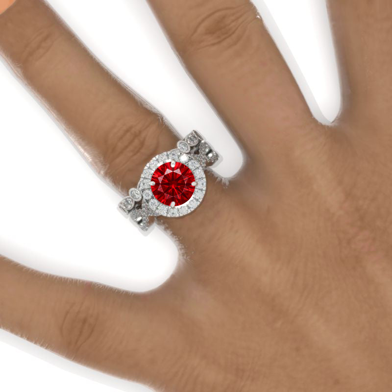 2 Carat Round Ruby Halo Twisted Shank Engagement Ring, Eternity Ring S - Giliarto
