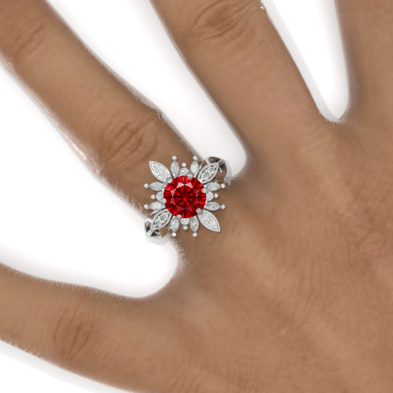 2 Carat Round Ruby Snowflake Halo Engagement Ring - Giliarto