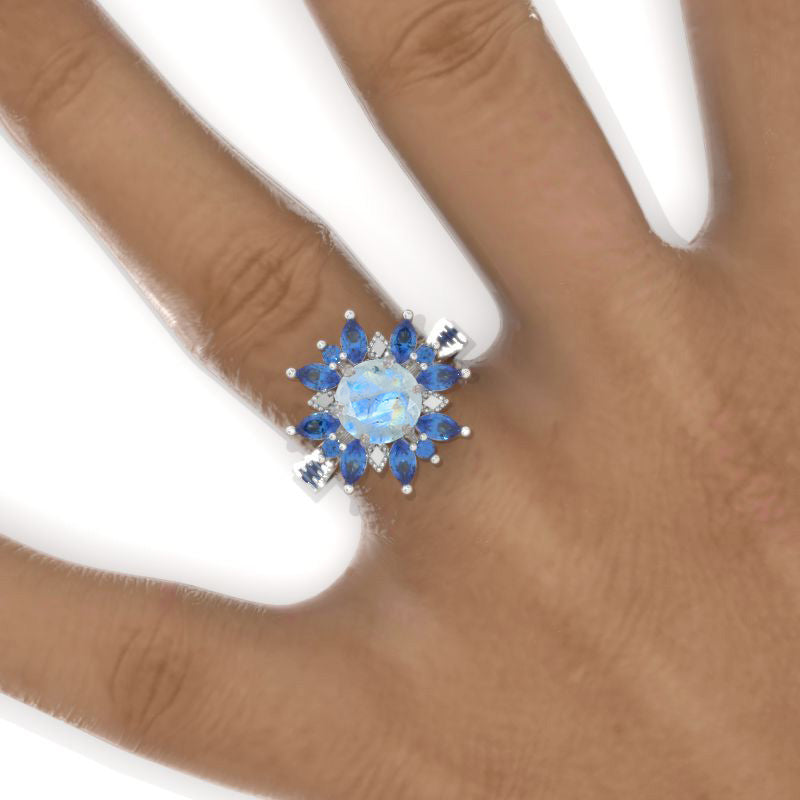 2 Carat Round Snowflake Floral Genuine Moonstone Halo Engagement Ring - Giliarto