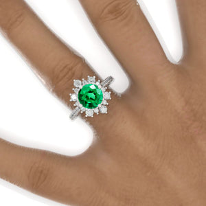 2 Carat Round Snowflake Halo Emerald Engagement Ring Victorian 14K Whi - Giliarto
